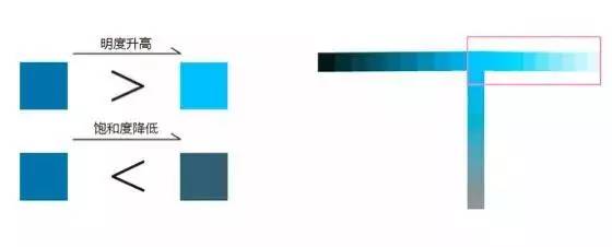 首先,我们要理解“颜色是有重量的”,如下图所示,随着明度和饱和度的升高,颜色的重量在下降: