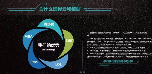 云和教育作为云和数据旗下高端泛IT职业教育品牌,开设有UI总监班、PHP高薪班、JAVA 名企直通班、HTML5专家班、Unity虚拟现实大师班五大精品课程。