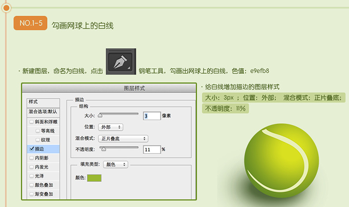 细致绘制网球毛边
