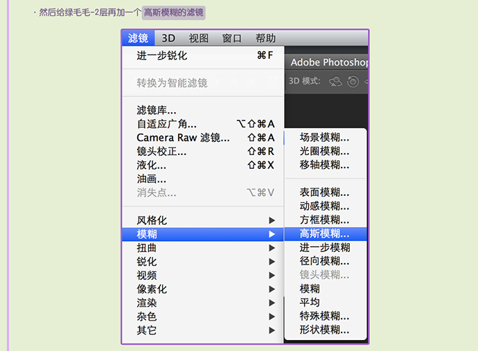 然后给绿毛毛-2层再加一个 高斯模糊的滤镜。
