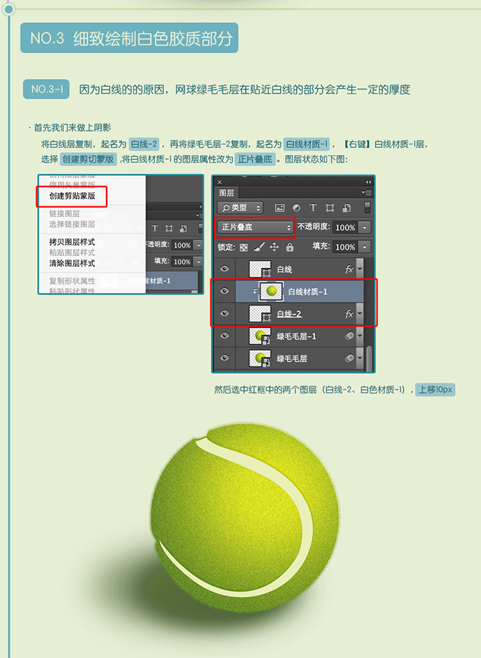 注意一下:3号位置因为离光源比较近,所以白色暗部-3的涂层属性为正片叠底,不透明度为70%。