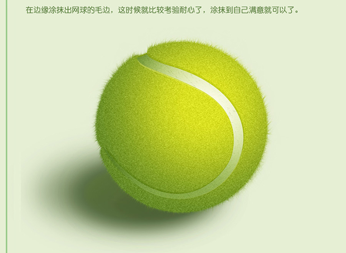 在边缘涂抹出网球的毛边,这时候就比较考验耐心了,涂抹到自己满意就可以了。