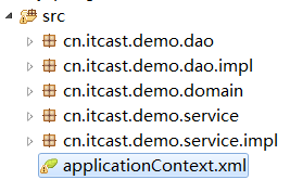 l 在src下添加“applicationContext.xml”,并将dao和service配置到xml文件中。