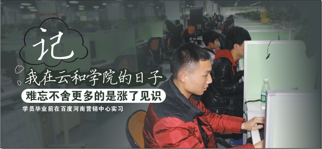 那段时间,在学校什么事都没有,整天可无聊。而又面临毕业,就想着不能这样,想换一个环境,让自己重新开始。2014年9月阿里巴巴上市,电商行业火爆,就想着转行,然后在网上查找了很多关于电子商务的信息,最后决定想从事网络营销。因为学校组织的一次活动,有幸来到云和数据公司旗下的云和学院参观,就深深的被这里的教学环境所吸引,就这样,我就那么简单的被“诱拐”到了云和,报了百度电商班。
