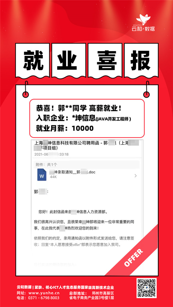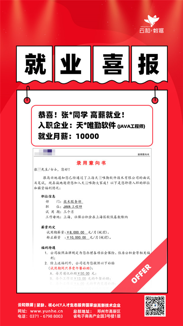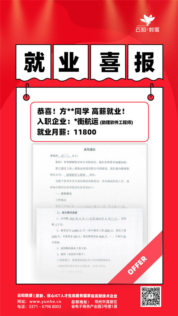 【云和数据学员就业】每一发奋努力的背后,必有加倍的赏赐,最近同学们都很拼,都很努力,结果换来的都是不断的惊喜!