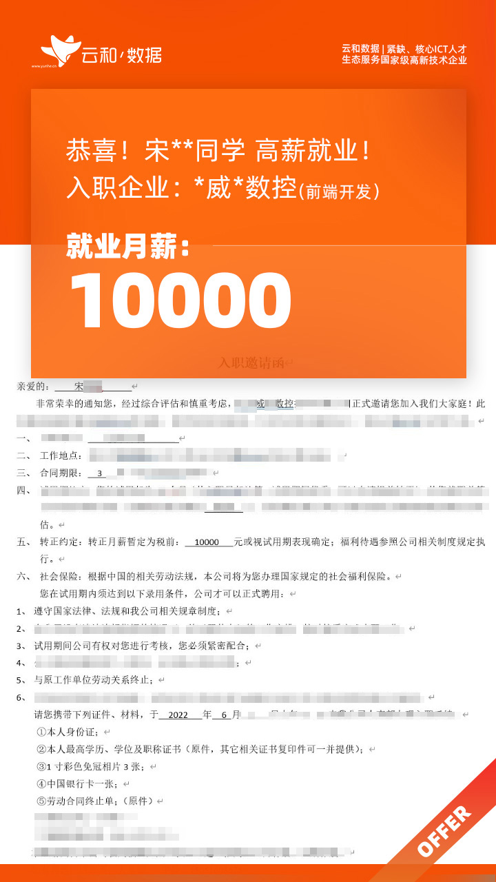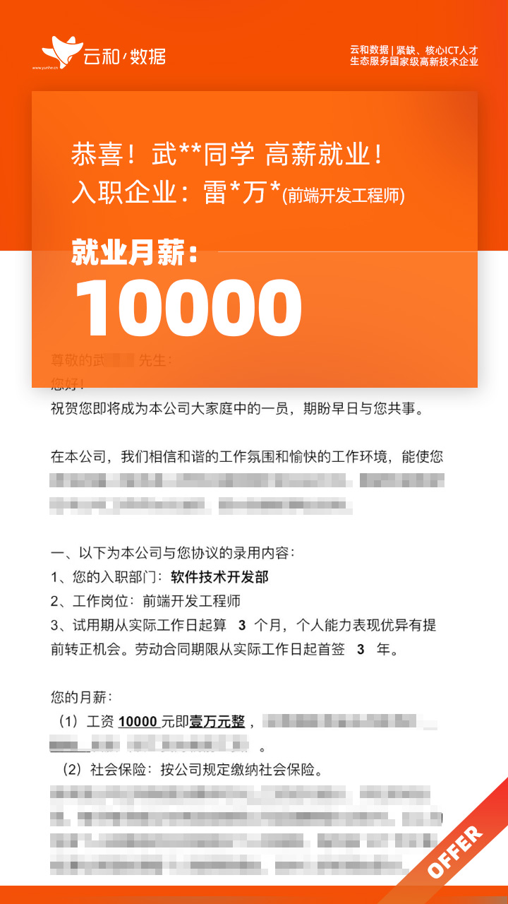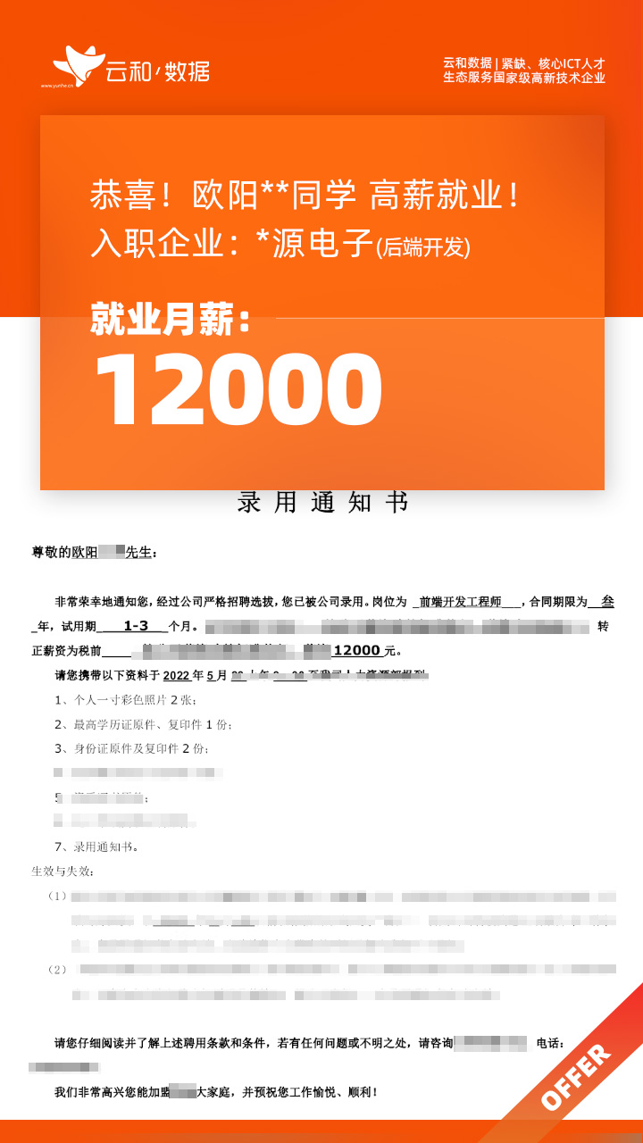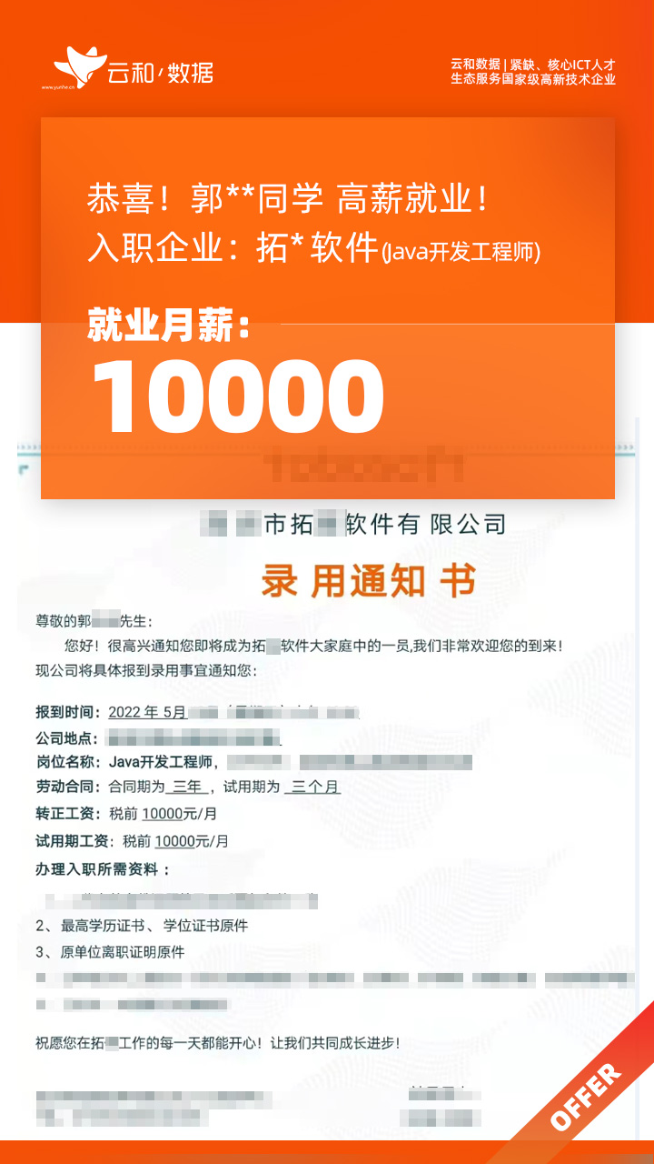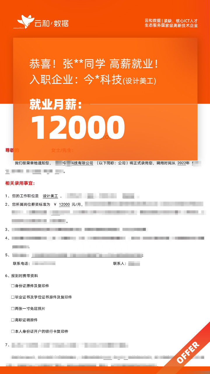 云和数据ICT职业教育发挥公司产业化优势与技术积淀,整合国内外优秀师资,累计自主研发140余项教辅、教材,115项实践教学实训平台,采用六位一体项目制教学模式,年培养高端ICT技术人才超10000人,其中线下ICT职业教育5500余人,累计为企业输送高端泛ICT技术人才超8万人,60%来自于口碑推荐。更大规模、更多人选择;更好的ICT学习、更好的就业。云和数据人才培养技术方向涵盖大数据、云计算、人工智能、虚拟现实、JAVA软件工程、UI用户体验设计、Web前端开发、网络安全八大方向,云和数据以八大精品课程为基础,八大就业基地为依托,一次就业率99.02%,61.9%就业薪资超1W,以大数据为首的精品专业平均薪资13.25K。
