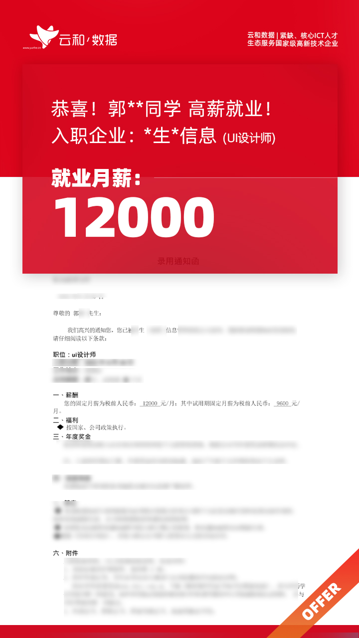 云和数据ICT职业教育发挥公司产业化优势与技术积淀,整合国内外优秀师资,累计自主研发140余项教辅、教材,115项实践教学实训平台,采用六位一体项目制教学模式,年培养高端ICT技术人才超10000人,其中线下ICT职业教育5500余人,累计为企业输送高端泛ICT技术人才超8万人,60%来自于口碑推荐。更大规模、更多人选择;更好的ICT学习、更好的就业。云和数据人才培养技术方向涵盖大数据、云计算、人工智能、虚拟现实、JAVA软件工程、UI用户体验设计、Web前端开发、网络安全八大方向,云和数据以八大精品课程为基础,八大就业基地为依托,一次就业率99.02%,61.9%就业薪资超1W,以大数据为首的精品专业平均薪资13.25K。