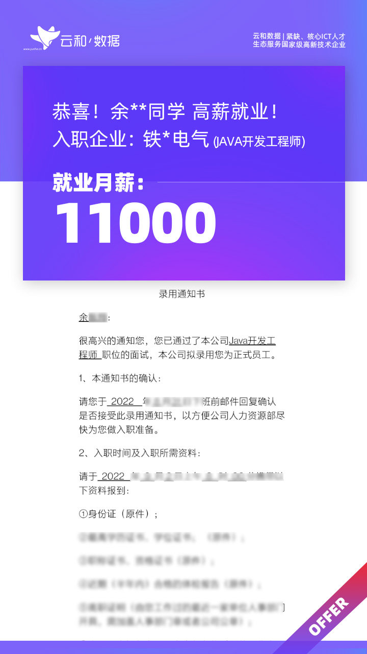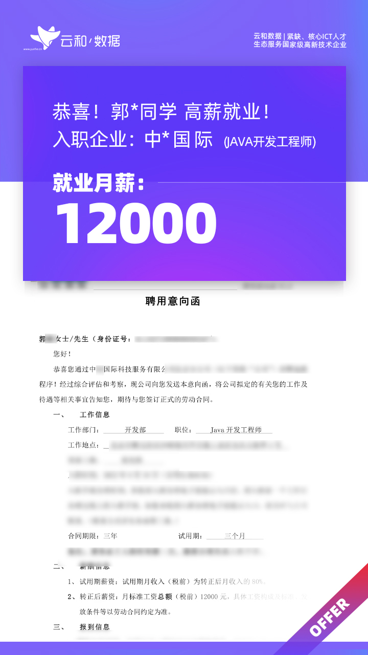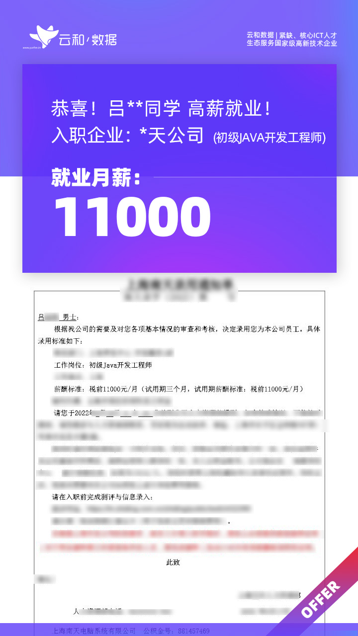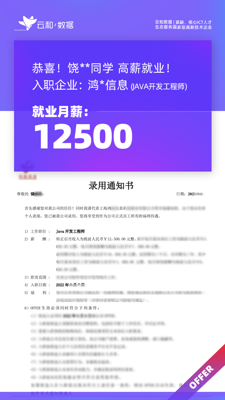 云和数据ICT职业教育发挥公司产业化优势与技术积淀,整合国内外优秀师资,累计自主研发140余项教辅、教材,115项实践教学实训平台,采用六位一体项目制教学模式,年培养高端ICT技术人才超10000人,其中线下ICT职业教育5500余人,累计为企业输送高端泛ICT技术人才超8万人,60%来自于口碑推荐。更大规模、更多人选择;更好的ICT学习、更好的就业。云和数据人才培养技术方向涵盖大数据、云计算、人工智能、虚拟现实、JAVA软件工程、UI用户体验设计、Web前端开发、网络安全八大方向,云和数据以八大精品课程为基础,八大就业基地为依托,一次就业率99.02%,61.9%就业薪资超1W,以大数据为首的精品专业平均薪资13.25K。