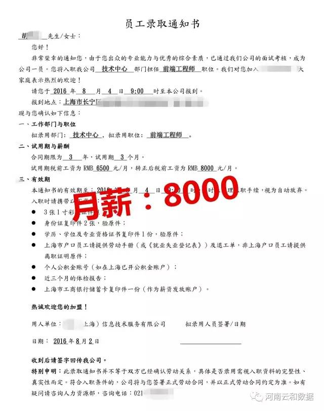 经过几个月的学习,我们从云和要再出发了,这次的我是满满的信心和希望。到上海不到一周我接到了面试通知并顺利的拿到了心仪的OFFER,回想之前求职时因为没有扎实的技术和项目经验导致屡屡碰壁,到现在从事着自己喜欢的工作,拿着高出同学几倍的工资,从心里真心感谢云和教育,让我的人生变得更精彩。