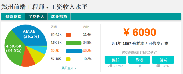 据职友网数据显示(郑州)前端工程师的平均工资6090元,其中应届毕业生基本工资4520元,具有2年经验的6560元,3~5年工作经验的可达到21250元,在上海北京等一线城市薪资更高。毕业于华中科技大学文华学院电子科技与技术的杨*同学,参加云和 H5 专家班课程培训毕业后,不到一周时间,入职上海一家科技公司,获9K月薪。