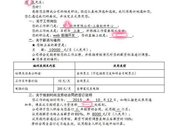 我叫侯*良,河南省镇平县人,在漯河职业技术学院读了3年的服装设计专业。现在在艾*软件担任web前端开发一职,月薪1W,另附餐补。