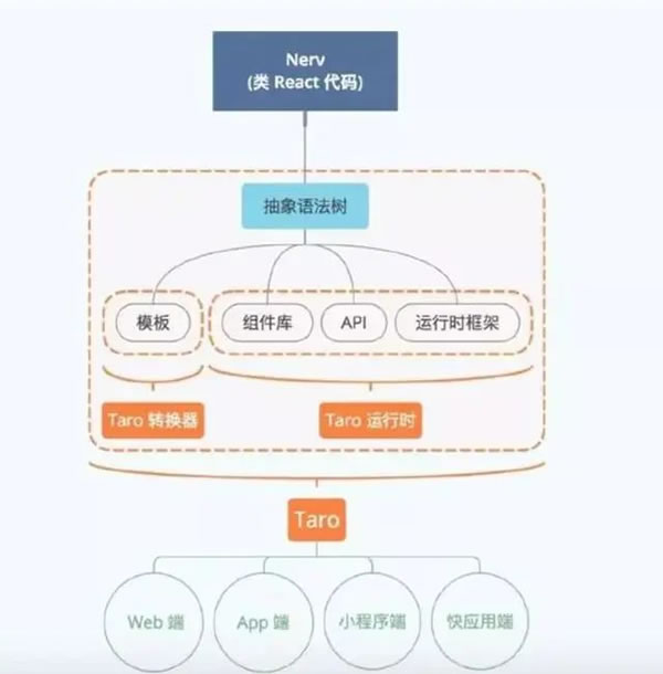 (2) Taro–一次编写,多端运行Taro 是由京东 – 凹凸实验室打造的一套遵循 React 语法规范的多端统一开发框架。通过 Taro 的编译工具,将源代码分别编译出可以在不同端(微信小程序、快应用等)运行的代码。