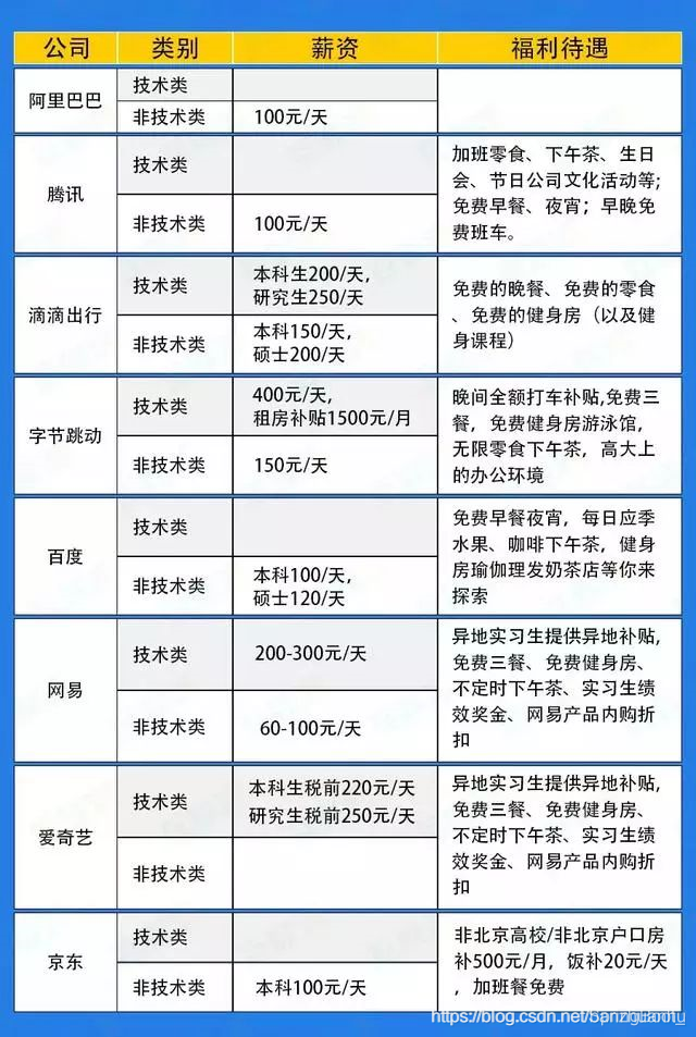 工资最低的是网易:60~100元/天