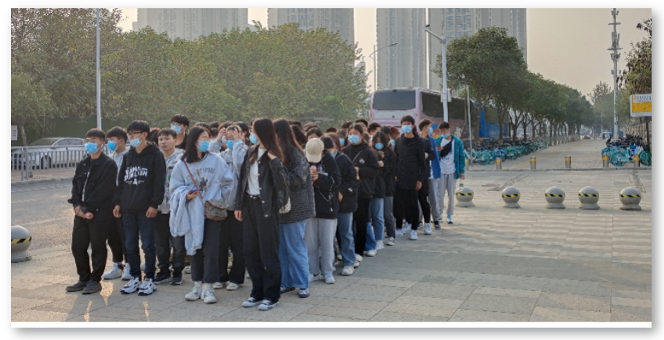 14日早上8点钟,迎着朝阳,天气虽然有点凉,但是两个专业共计300余名学生热情高涨,每位同学都做好了保暖措施,参观全程带上口罩做好个人疫情防控,早早的来到篮球场集合,由各班班长组织并查点人数之后,同学们以班为单位有序的登上车辆,怀着对实训基地好奇和期待开启了他们第一次的外出集体活动,去的途中同学们,问了许许多关于“去实训基地学习的时间,如何在实训基地学习”等方面的问题,学习热情高涨。