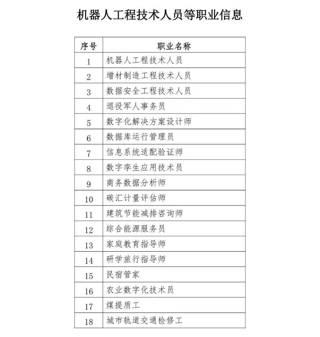 18个新职业信息