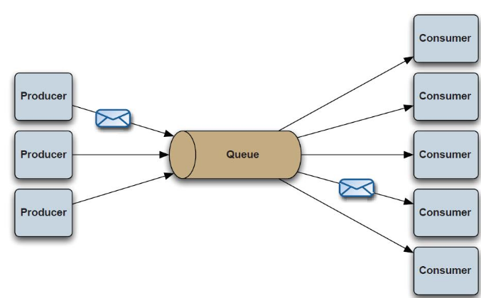 在点对点或队列模型下,一个生产者向一个特定的队列发布消息,一个消费者从该队列中读取消息。这里,生产者知道消费者的队列,并直接将消息发送到消费者的队列。这种模式被概括为:只有一个消费者将获得消息。生产者不需要在接收者消费该消息期间处于运行状态,接收者也同样不需要在消息发送时处于运行状态。每一个成功处理的消息都由接收者签收。