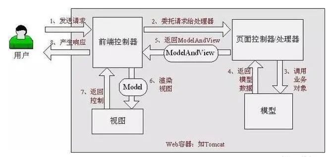 1、 首先用户发送请求————>前端控制器,前端控制器根据请求信息(如URL)来决定选择哪一个页面控制器进行处理并把请求委托给它,即以前的控制器的控制逻辑部分;图2-1中的1、2步骤;2、 页面控制器接收到请求后,进行功能处理,首先需要收集和绑定请求参数到一个对象,这个对象在Spring Web MVC中叫命令对象,并进行验证,然后将命令对象委托给业务对象进行处理;处理完毕后返回一个ModelAndView(模型数据和逻辑视图名);图2-1中的3、4、5步骤;