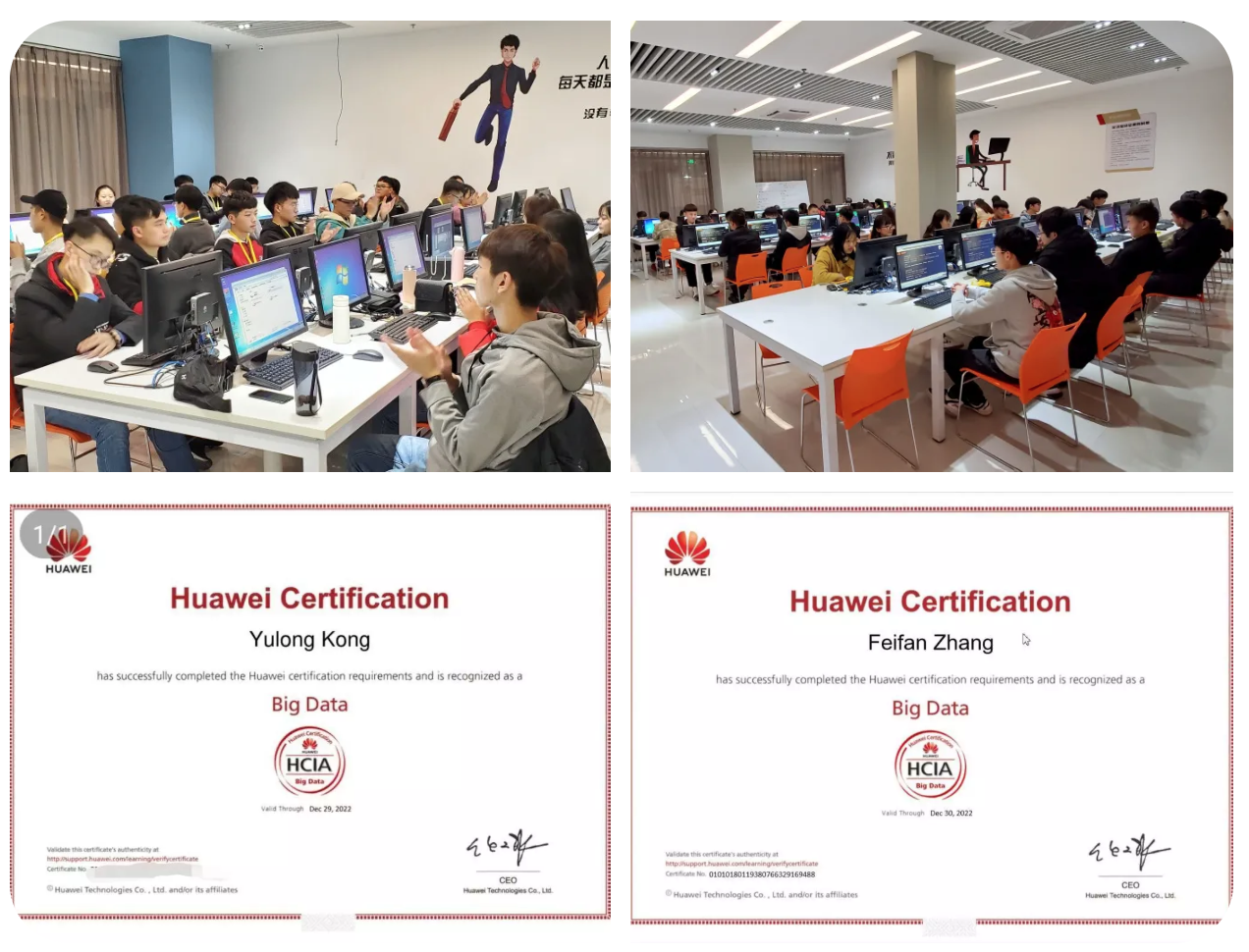 去年年末,河南经贸职业学院华为ICT学院首届华为认证专班的学员们,顺利完成了为期一个月的华为大数据HCIA认证课程学习,并于2019年12月30日至31日参加了华为大数据HCIA认证考试。在参加考试的78名学员中,有多达77人通过华为认证考试,获得华为HCIA-BigData证书。