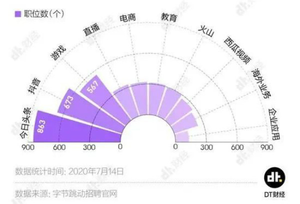 字节跳动招聘的业务线主要有:今日头条、抖音、游戏、直播、电商、教育等,很显然,字节跳动正在积极地扩大自己的版图,花大手笔招兵买马,“重仓”敌军领域。