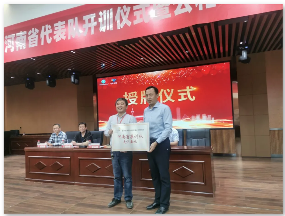 会议上授予河南经济贸易技师学院河南省集训队走训基地授牌。