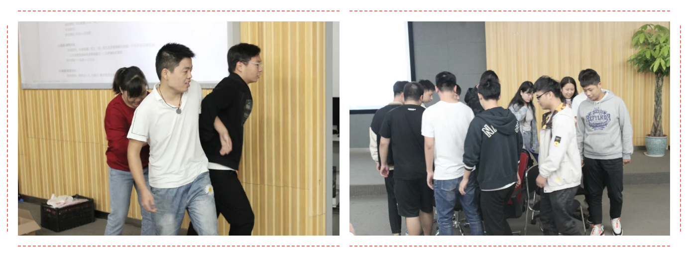 6人一组,站在一张报纸前,裁判喊开始后,3秒内组内所有人把脚放在报纸范围内获胜。