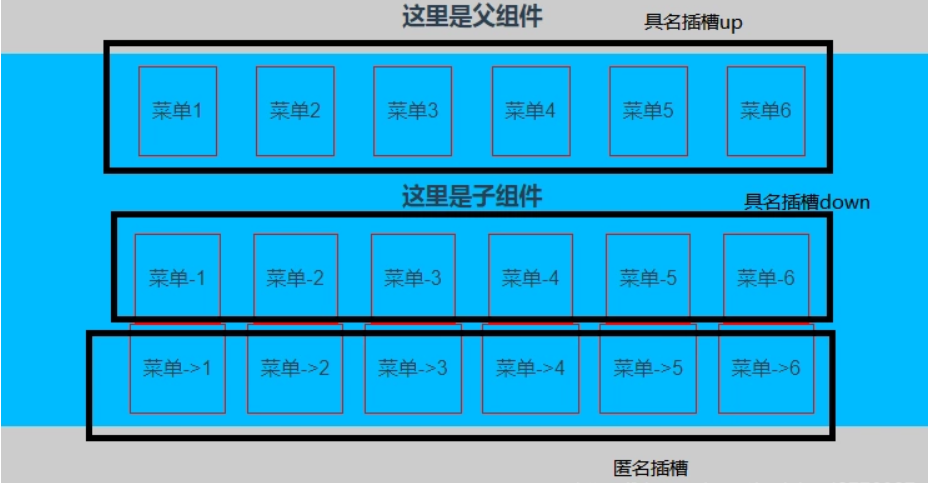 我们再来对比,作用域插槽和单个插槽和具名插槽的区别,因为单个插槽和具名插槽不绑定数据,所以父组件是提供的模板要既包括样式由包括内容的,上面的例子中,你看到的文字,“菜单1”,“菜单2”都是父组件自己提供的内容;而作用域插槽,父组件只需要提供一套样式(在确实用作用域插槽绑定的数据的前提下)。