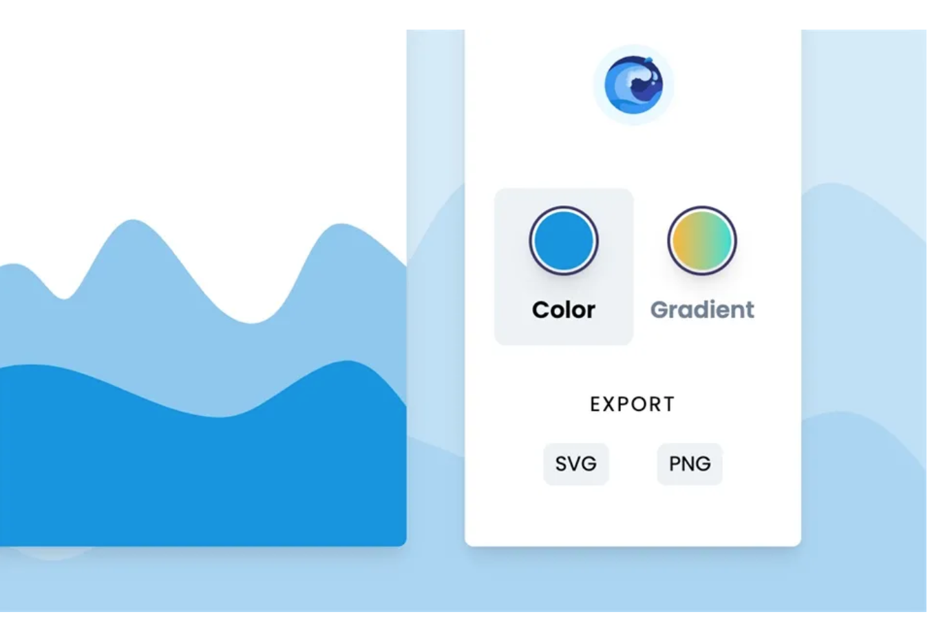 开启 Svg Wave 网站后会看到波浪背景范例,从「Color」选取颜色或「Gradient」以两个颜色产生渐层色效果,Svg Wave 可实时预览颜色。