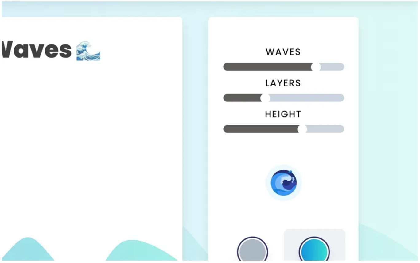 上方的 Waves、Layers 分别代表波浪的数量和层数,直接以拖曳方式调整就会实时呈现在网页上,调整 Height 可选择不同的浪高,看起来整体感觉又会不太一样。