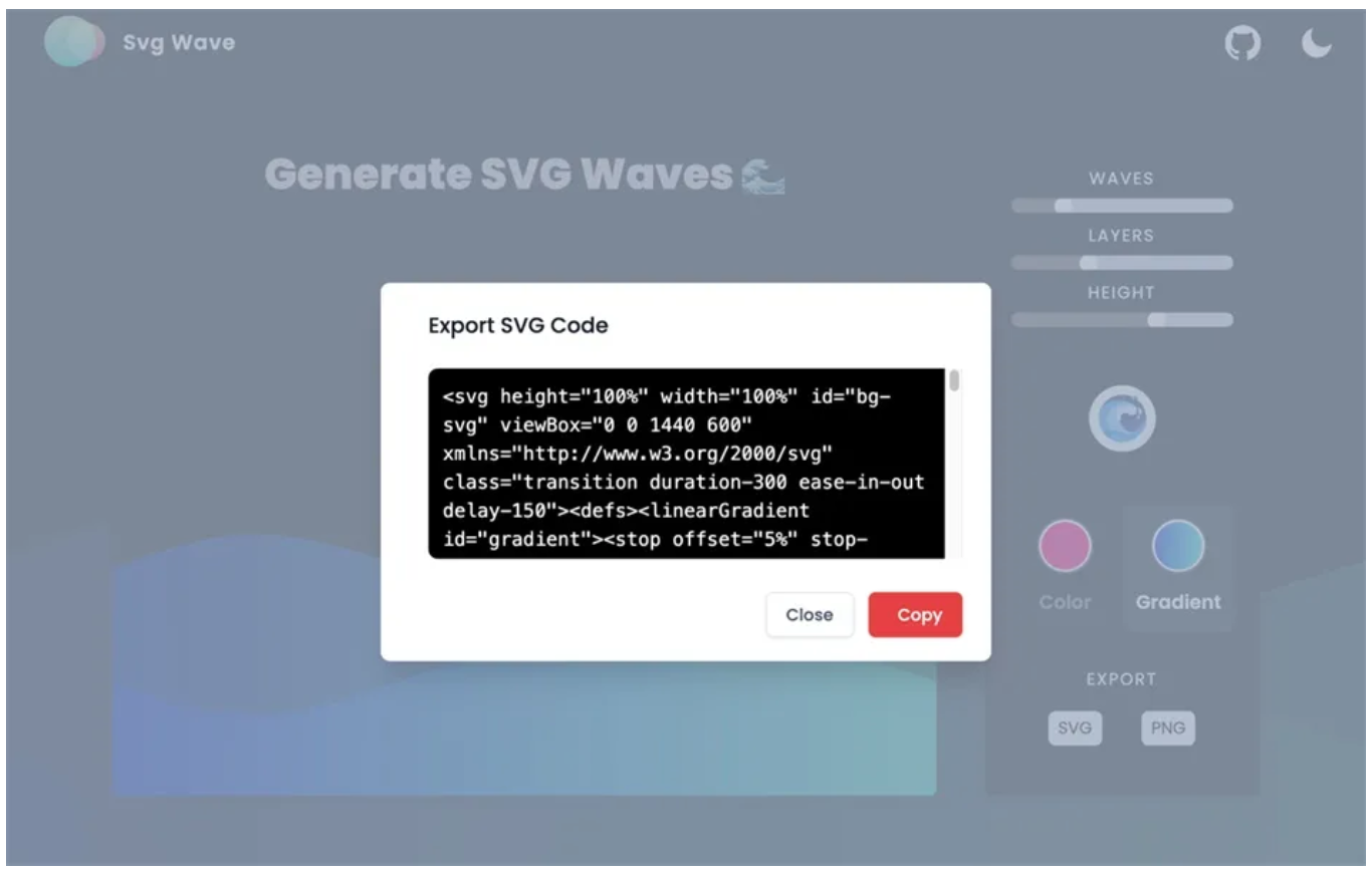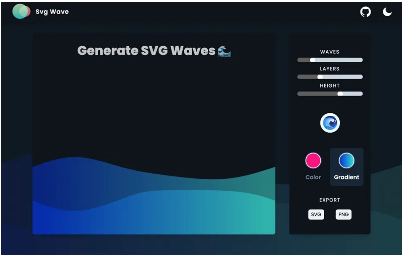 如果想知道在深色背景呈现效果,点选 Svg Wave 右上角的图标可切换深色模式。