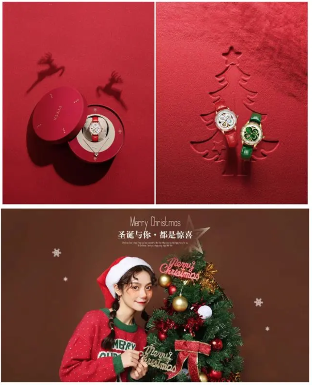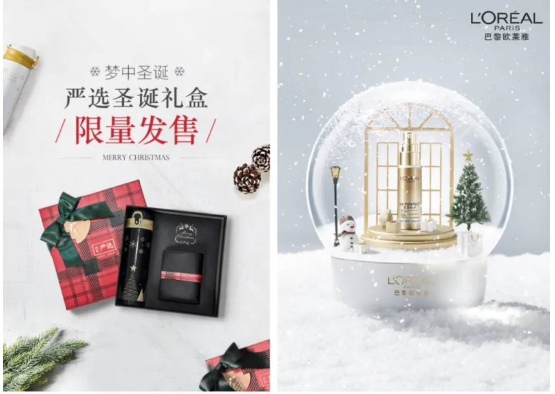 如果作品是以品牌宣传为目的,那就要在保留圣诞节日气息的前提下,更能凸显品牌调性。