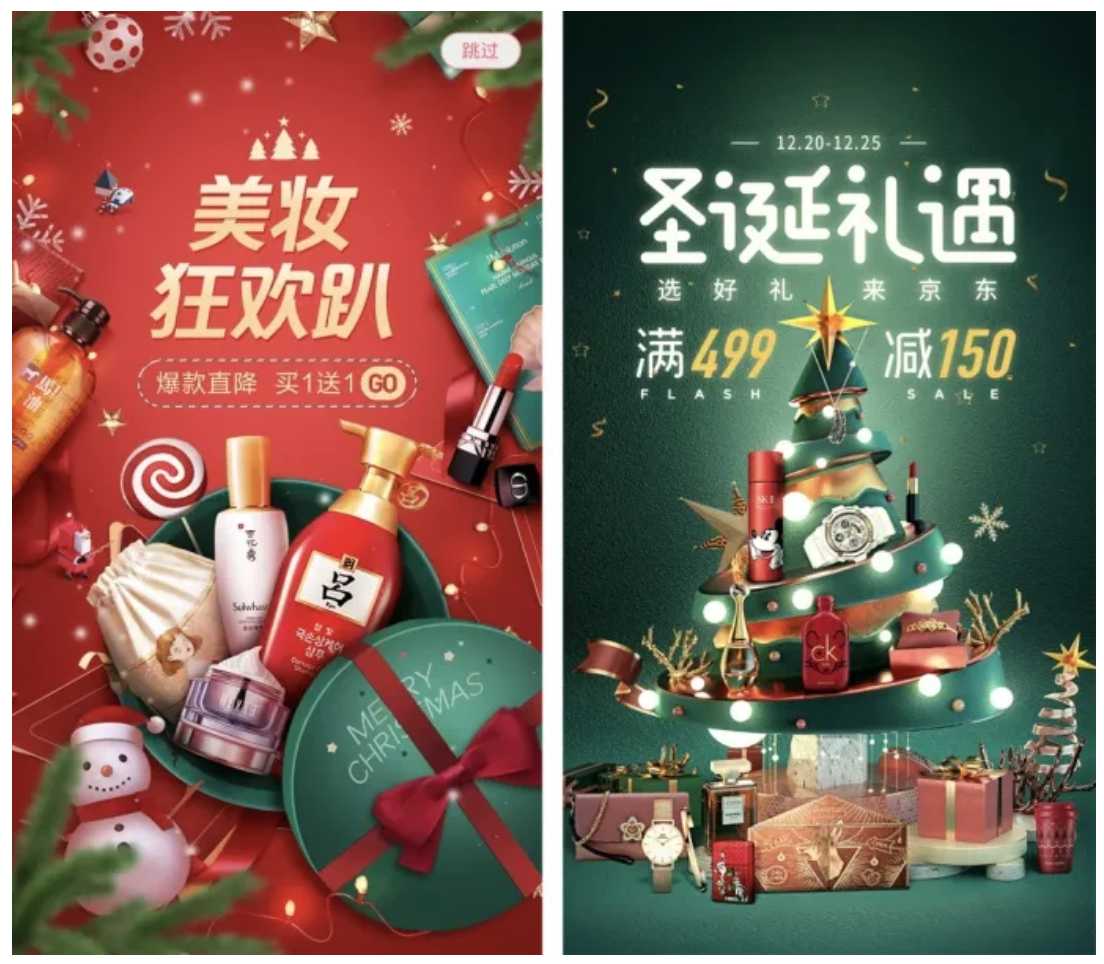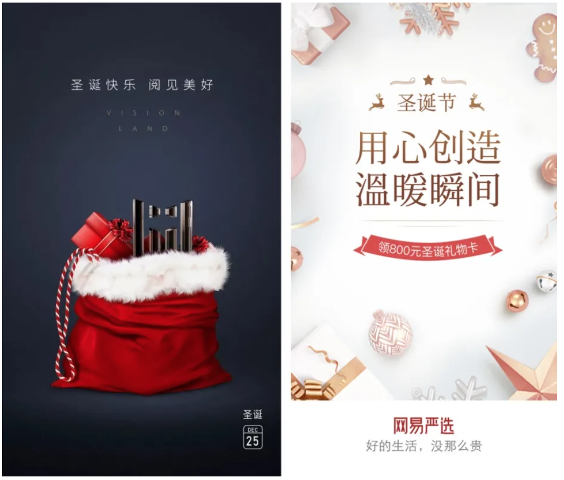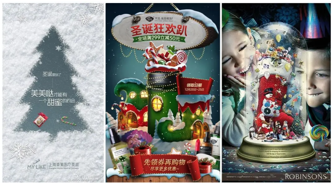 在视觉元素模块中就提到过圣诞节的视觉符号,利用好这一点,基本上就不会出错,下面一起看几个案例:
