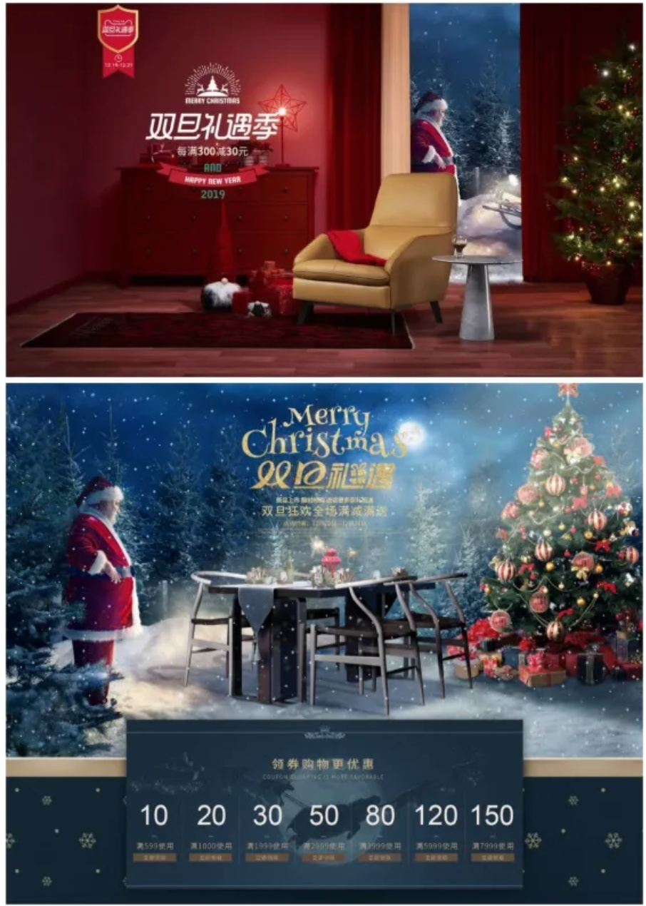 另外当刻意放大圣诞视觉符号时,会给人更强烈的视觉冲击力和圣诞氛围感。