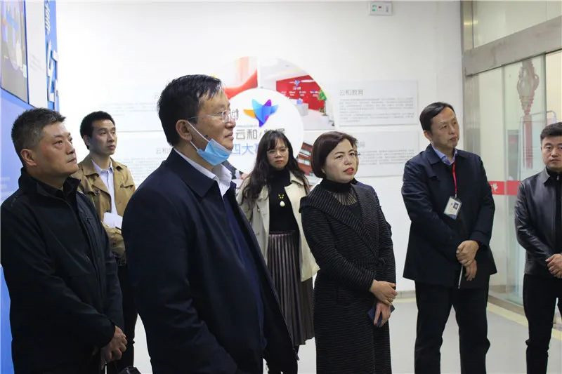 云和数据集团董事长郭总,云和数据集团副总经理陈总,河南编程科技有限公司总经理木兰总,云和数据集团副总经理伦总,云和数据集团副总经理李总,云和技术事业部副总经理李总,集团人资行政中心总监韩总,云和数据郑州科技学院基地主任薛主任陪同参观。