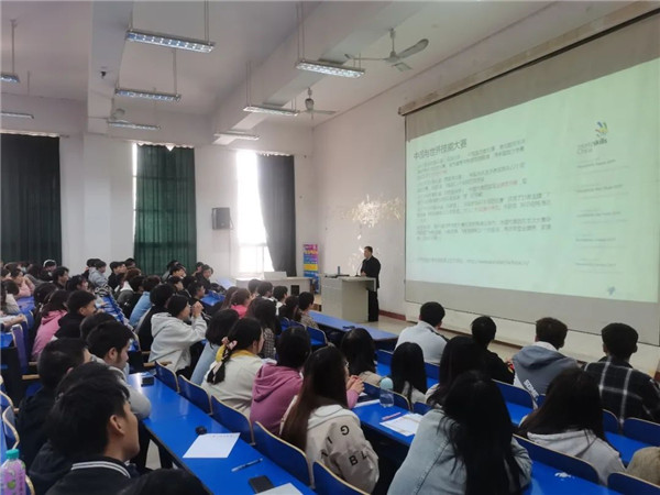 陈总为大家详细介绍了世界技能大赛的相关知识,包括大赛项目、中国与世赛、各级政府奖励措施等方面,陈总给大家分析了世界技能大赛对我们青年人发展的重要性,大大激励了在场学生的积极性。
