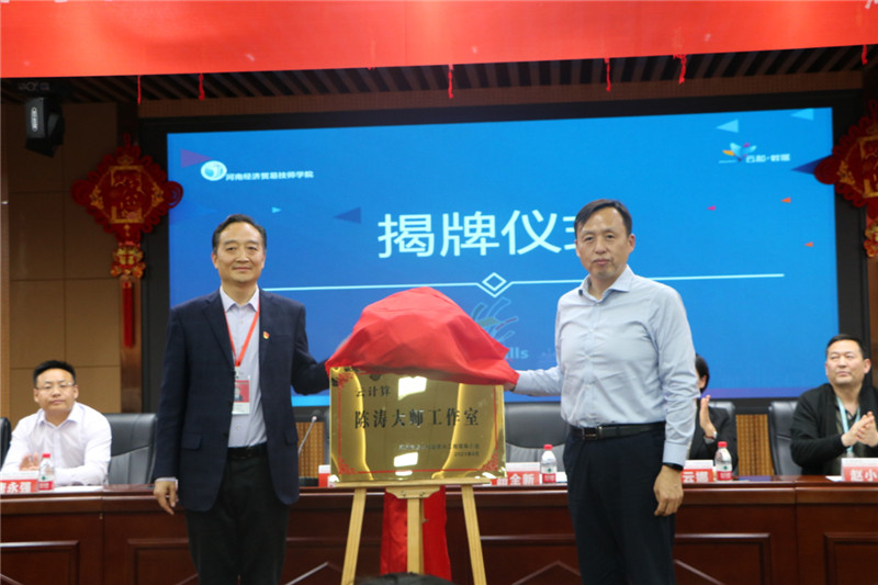 然后,由河南经济贸易技师学院副院长路院长与云和数据信息技术有限公司副总经理陈总进行揭牌。