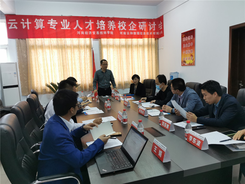 河南经济贸易技师学院副院长路全新、信息技术系主任张云娜、网络中心主任赵小伟,云和数据信息技术有限公司副总经理陈总、副总经理李总、云和服务事业部副总经理唐总、云和教育事业部云计算教研组组长孙老师,以及19级云计算专班学员、20级云计算班学员共同参加了此次宣讲及揭牌仪式。
