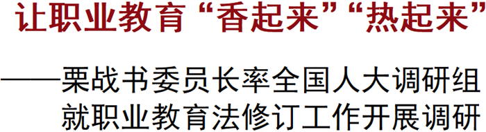 栗战书强调,要全面贯彻习近平总书记关于职业教育的重要指示要求,把党中央关于职业教育改革发展的政策举措和实践中的成功经验,通过法定程序转化为法律规范,推动解决职业教育中的热点难点和突出问题,为培养更多的高素质劳动者和技术技能人才,打造现代职业教育体系夯实法治基础,真正让职业教育“香起来”“热起来”,让更多青年都有人生出彩的机会。