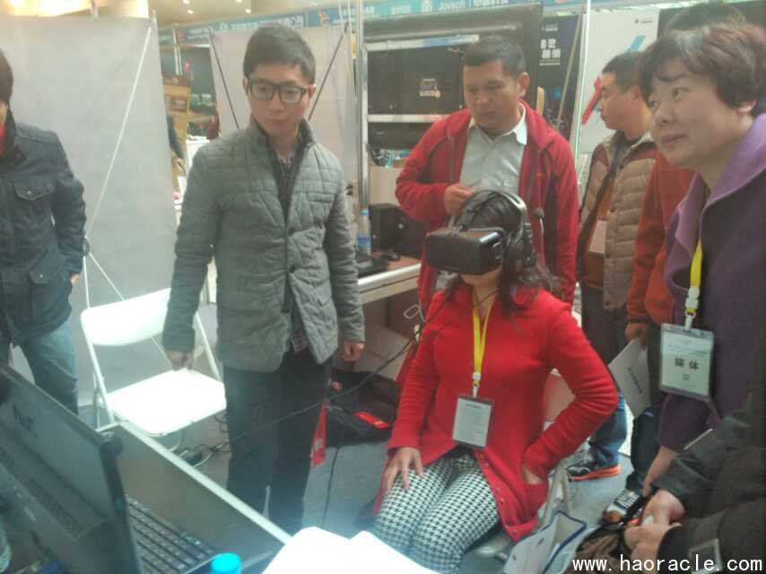 不得不说的是,云和数据为了此次峰会的展示,已经筹备近2个月。峰会当天,云和数据的小伙伴们天还没亮就集合在了国际会展中心的轩辕堂外。进入会场之后,众人分工明确,开始展区重布置和虚拟现实体验的调试等相关工作。峰会正式开展之后,云和数据凭借视频的渲染力和现场体验者的口碑,瞬间聚集了一大批想要进行虚拟现实体验的观众。整个上午,想要进行虚拟现实体验的参展人员络绎不绝,小伙伴们也是使出浑身解数来进行解说和控场,足见云和数据独创的基于Unity3D场景建模并配合Oculus眼镜的视觉效果所呈现出的高真度“云台山”虚拟现实场景是多么受大众欢迎热捧。