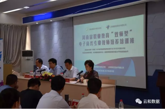 河南省职业教育双师型电子商务专业教师培养培训班开班仪式在河南省商务中等职业学校、云和数据信息技术有限公司以及职业院校电子商务专业各位骨干教师的合力推动下,于2017年7月10日在河南省商务学校报告厅举办取得圆满成功。