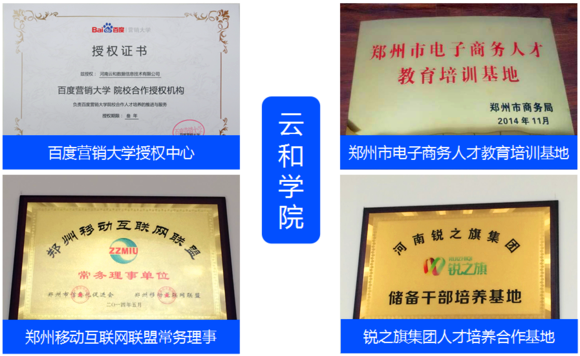 云和学院作为百度营销大学的官方授权运营机构,在对百度电商班的课程设置初期,从人才需求,供求关系,薪资收入等多维度进行大量市场调研。课程体系的制定君均来自百度营销大学及知名企业的成功案例。包涵SEM、SEO、SMO以及网站展现、图形图像处理等(还可以考取百度官方等级证书)。