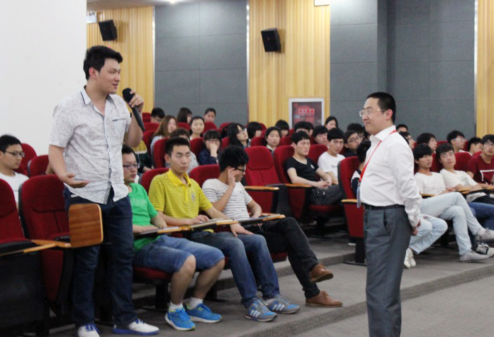 在参观过公司办公大厅、云和服务、云和游戏及云和学院教室、企业联盟等场所后,数百位学生齐聚报告厅,公司王总就现在大学生的就业概况做了演讲,收到同学们的阵阵掌声。并为学生目前的就业困扰作出解答,为学生上了实属难能可贵的一课!