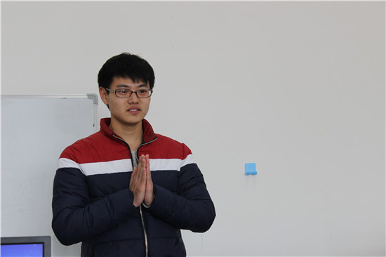 “我叫杜*坤,咱们班就只有我们两个男生,哈哈,福利真好!以后有啥活尽管找我,重的就陈*辉干,轻的呢,就交给我吧,哈哈……好,下面言归正传,我来云和学院之前,我们老师跟我说,人的一生想要在社会上立足得有两大绝技:能力和技术,我没有能力,好歹也得掌握一门技术吧,所以来到了云和,希望以后大家可以互相帮助,不会的地方大家相互讨论交流。”