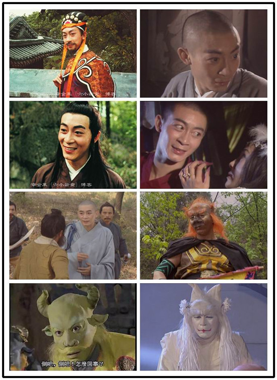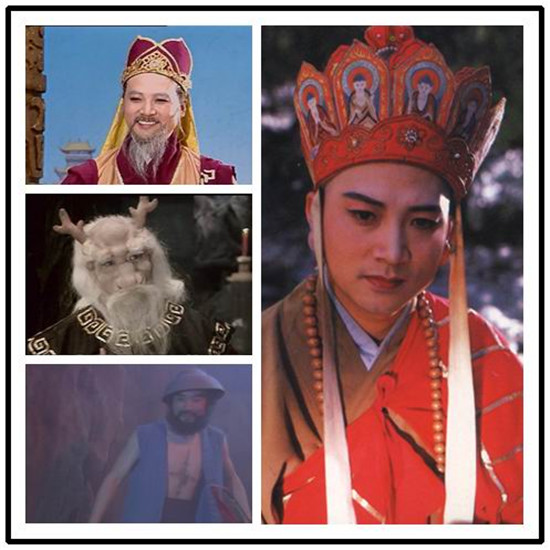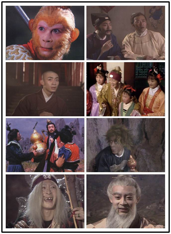 六小龄童——孙悟空、长安茶客、姨婆、九尾狐狸、车迟国老道、观音院小和尚、金光寺的和尚、中年道士、三清观山寨元始天尊、麒麟山道士、镇海寺小喇嘛、假悟空、金兜山南小妖怪、路遇山贼小和尚、总钻风、白无常。