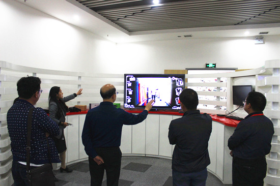 在云和数据高总监与李经理的引领下,郭局长一行来到云和技术体验中心,听取了有关unity前沿应用技术方面的讲解,并亲身体验了云和数据基于Unity3D开发的购物、房地产行业虚拟现实技术应用项目。