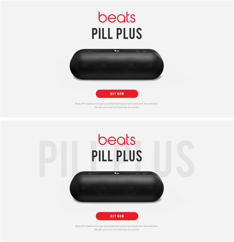 同样是产品+文案,上下的差距一目了然,之所以会呈现出这样的视觉感受在于对留白的运用,也就是视觉比例关系,当整体比例关系运用得当时,哪怕只是产品和文案,不添加任何辅助元素和效果,也不会给我们「空」的视觉感受;各个元素的视觉比例不恰当也会是造成画面「空」的原因之一。