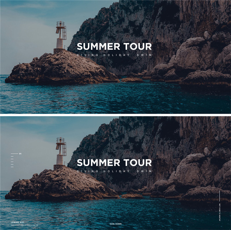 画面「空」最直接的原因在于留白不合理,那么最常用的解决方式就是将原本不合理的留白通过其他元素进行填充,也就是要做加法运算。水印文字就能起到很好的填充作用,而且也非常实用,比如: