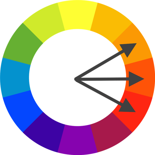 它们对比强烈,可以用来吸引观众的注意力。 当使用互补色方案时,重要的是选择主色并且使用其互补色用于强调。 例如,当人眼看到一块不同色调的绿色物体时,一点红色就会很突出。