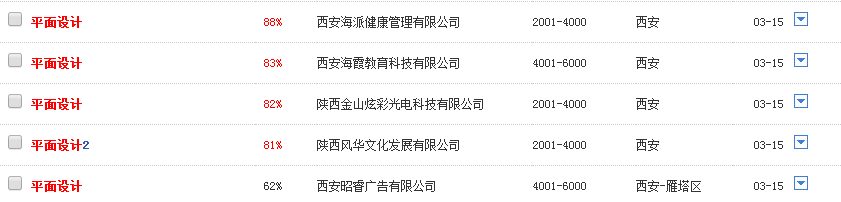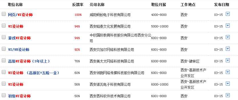 先从薪资待遇的不同了解,下面是平面设计和ui设计在西安智联网上的招聘薪资情况,